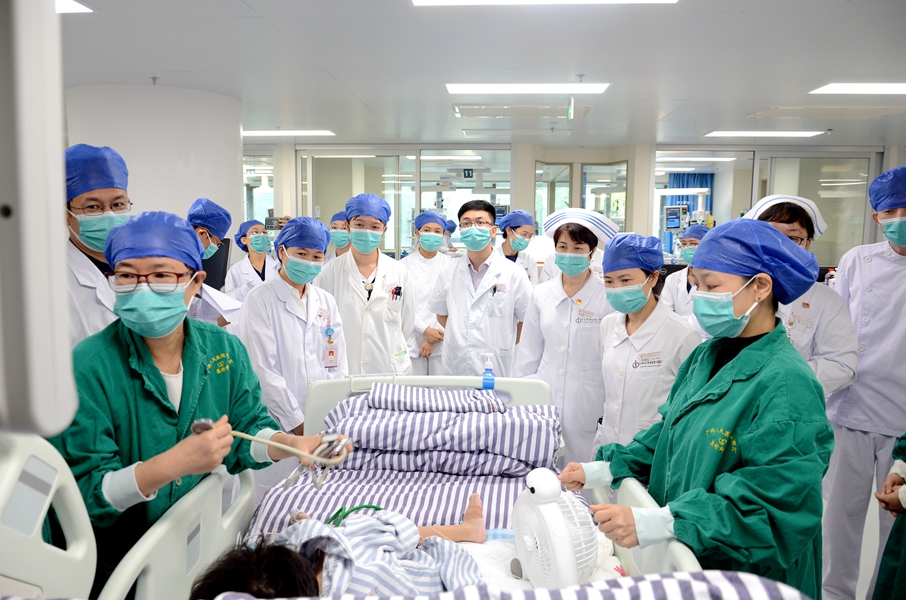 经过10余天的监护治疗,患儿肺炎得到良好控制,发热症状也明显改善,病情向好的方向发展。儿科和EICU专家制定撤机方案,然而经过数天的尝试,发现患儿出现肌肉萎缩,无法撤除呼吸机。医院领导高度重视此次救援,为了能让患儿得到更好的治疗,院领导决定联系总院专家进行联合会诊,围绕患儿的情况制定更精准、更高效的治疗方案。