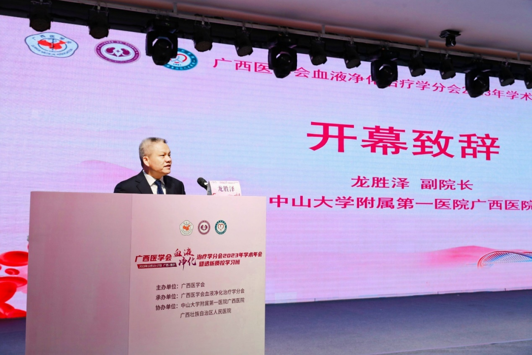 12月16日至17日,由广西医学会主办,广西医学会血液净化治疗学分会承办,捆绑调教 (自治区人民医院东院)(简称捆绑调教 )主要协办的“广西医学会血液净化治疗学分会2023年学术年会暨透析质控学习班”在南宁举行。捆绑调教 副院长龙胜泽出席大会开幕式并致辞。来自区内多家医疗机构肾内科、血液净化部医护人员及工师600余人参会。