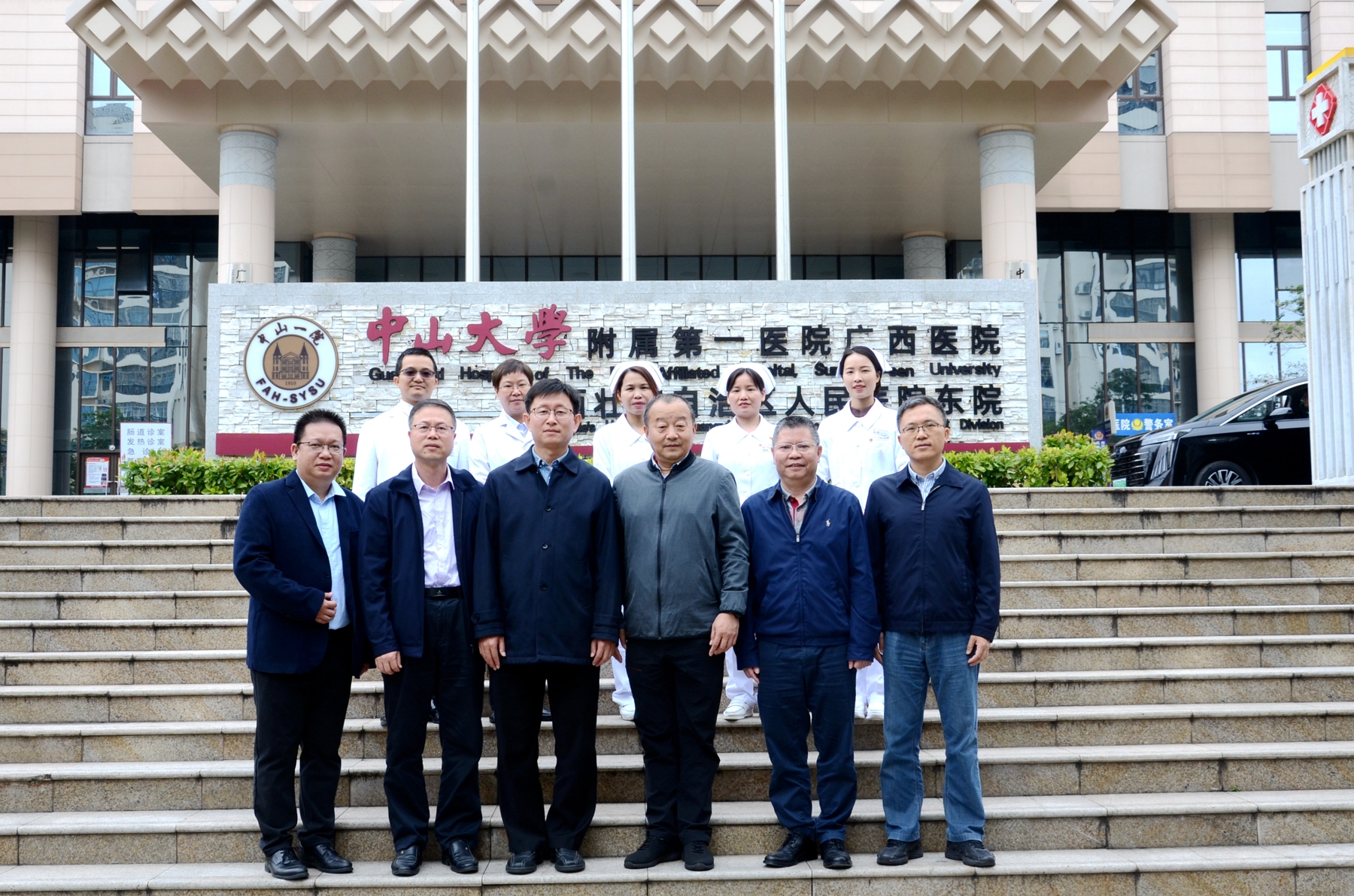 中山一院广西重症医学科现有医护人员38名,其中主任医师2名,副主任医师3名,住院医师2名,均为硕士研究生学历,科室负责人陆政主任医师担任广西重症医学质控中心秘书、广西医师协会休克与脓毒症专业委员会青委副主任委员、广西医师协会重症医学分会委员等多个社会任职,数名医生为广西医师协会多个专业委员会委员;中山大学附属第一医院派驻重症医学护理专家1名,副主任护师3名,主管护师8名,陆艳兰护士长在新冠疫情期间担任广西“小汤山”护理临时负责人,2020年荣获“广西三八红旗手”,2021年参加中国援科摩罗短期抗疫医疗队,获得科摩罗总统颁发的荣誉证书。