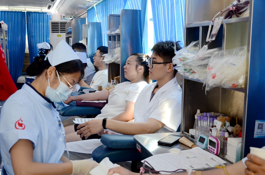 “血量有限,但爱心无限。定期献血,可以帮助有需要的人,这让我感到很自豪。”献血队伍中,有忙碌于一线的医护人员,也有坚守在岗位的后勤人员,还有在院实习、进修、规培的医护人员,大家都有一个共同的目标:“献一份热血,用爱心行动,为社会添加一份爱的力量和温度”。