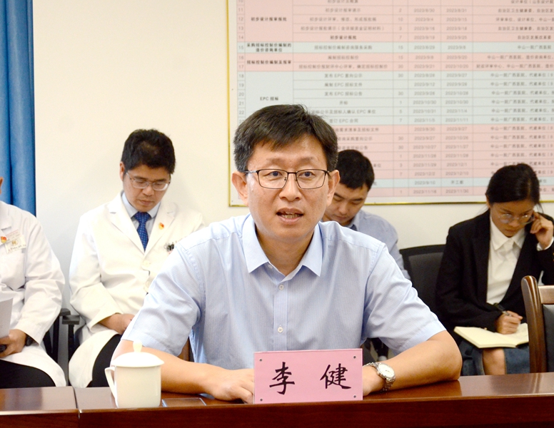 座谈会上,李健对黄献明一行的到来表示欢迎,并从医院发展规划、重点专科建设、人才梯队建设、医院文化建设等方面介绍了医院的基本概况。他表示,国家区域医疗中心项目建设是加快推进优质医疗资源扩容和区域均衡布局的重大决策部署,目的是将捆绑调教 建成“立足广西、辐射基层、面向东盟”的区域医疗高地,并建立“县级-市级-区级”的大规模医联体,通过医联体的链接,将优质医疗资源送到老百姓身边,帮助提升基层医疗技术水平和医疗服务质量,让老百姓享受到更优质更高效的医疗服务。