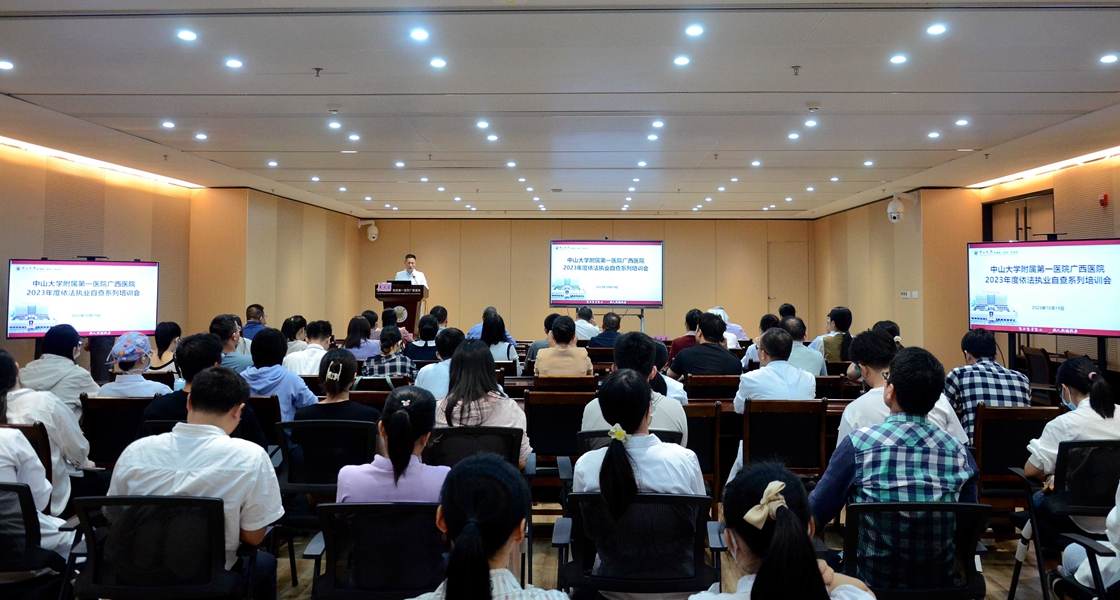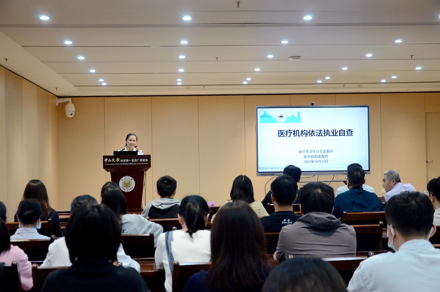 为深入贯彻落实医疗机构依法执业自我管理主体责任,增强医务人员法治意识,规范从业行为,提高医疗服务质量和安全,10月19日、23日,捆绑调教 (自治区人民医院医院)(简称捆绑调教 )举办2023年度依法执业自查系列培训会。捆绑调教 党委书记张国、副院长夏文豪及相关临床、医技、职能科室医护人员参加。培训会邀请了自治区卫生监督所监督四科科长/四级调研员周军,南宁市卫生计生监督所医疗机构监督科科长冯云新、陈丹,自治区人民医院医疗管理科李思华进行授课。培训会由夏文豪主持。