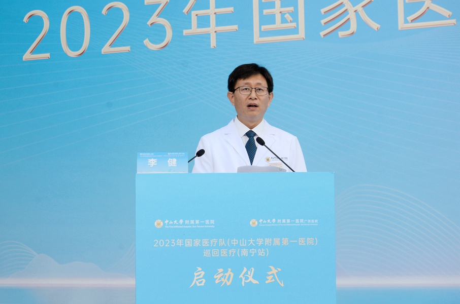 近年来,广西高度重视医疗卫生事业发展,大力推进医疗卫生项目建设,积极支持医疗机构加强与发达地区先进医院的学习交流合作,实现医疗卫生资源扩容增量,医疗卫生服务能力显著提升。特别是与中山大学附属第一医院共建的国家区域医疗中心正式实现挂牌运行以来,中山大学附属第一医院在医院管理、医疗技术、学科建设、人才培养等方面给予了广西大力支持,有效扩容了广西优质医疗资源、带动了广西服务能力的提升。这次,中山大学附属第一医院又选派了9名各个领域的专家组成国家医疗队到我区开展巡回医疗工作,给我们传授先进的医疗技术、搭建了进一步沟通交流的桥梁,我们必须全力组织好、保障好,确保巡回医疗工作顺利开展、取得实效。