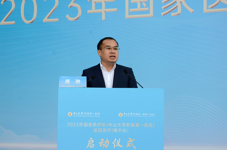 国家医疗队巡回医疗工作充分体现了国家卫生健康委对打赢脱贫攻坚战、落实健康扶贫政策的高度重视,体现了中山大学附属第一医院对广西人民的深切关怀,彰显了中国共产党坚守初心、不忘本色、一脉相承的精神底色。希望有关卫生行政部门与医疗卫生机构积极配合,全力做好巡回医疗沟通衔接和各项保障工作,全面推进南宁市卫生健康事业高质量发展,为建设新时代壮美广西贡献我们卫生健康系统的力量。希望粤桂同行建立更加紧密的联系,持久发挥“传帮带”效应,为南宁市留下一支带不走的医疗队伍。
