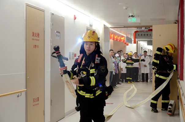 启动会结束后,医院在住院楼13楼耳鼻咽喉头颈外科开展了火灾应急处理模拟,包括火警报警、火灾扑救和疏散逃生等情景的演练。火灾发生后,医院应急指挥部、安全警戒组、疏散引导组、消防救援队、物资保障组迅速赶到现场按照应急预案各司其职,进行救援。在各岗位员工积极配合下,消防演练圆满完成。