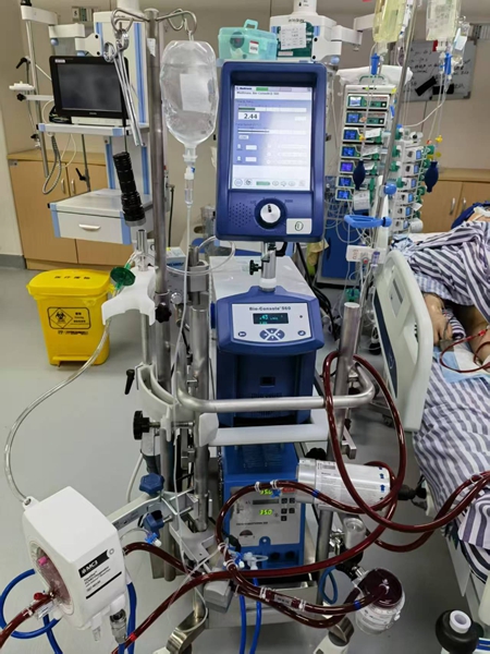 “患者年轻,无基础疾病,有心电活动,抢救过程中有肢体活动,虽心脏停跳较长时间,仍有生还可能,可考虑ECMO支持!”急诊科执行主任朱瑞凯果断决定启用ECMO团队,并通过电话与患者家属沟通并获得同意后,在抢救室快速安装ECMO。