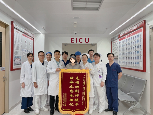 ▲家属给急诊科医护团队送锦旗,表达感激之情。