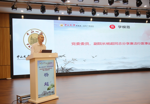 副院长杨超在活动中分享拒收患者红包、主动延时服务等廉洁行医事迹,树立榜样力量。