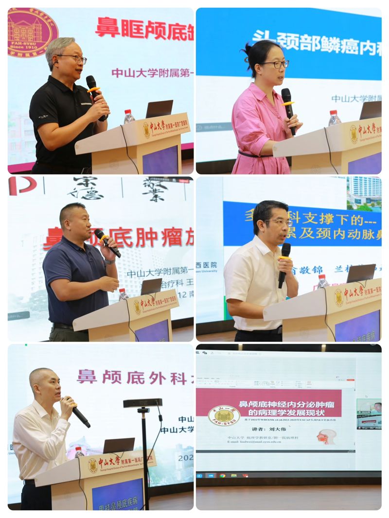揭牌仪式结束后,中山一院神经外科郭少雷教授、肿瘤科龙健婷教授、放疗科王岩教授,广西壮族自治区人民医院副院长瞿申红教授,捆绑调教 副院长杨超教授分别以《鼻眶颅底缺损修复探讨》《头颈部鳞癌内科治疗2025更新要点》《鼻颅底肿瘤放疗现状》《多学科支撑下的累及颈内动脉鼻咽癌相关病灶的外科策略》《鼻颅底外科术后水盐代谢紊乱》为主题进行授课分享。中山一院病理科刘大伟教授通过线上方式分享了《鼻颅底神经内分泌肿瘤的病理学发展现状》的内容。