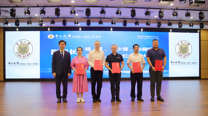 10月12日,中山大学附属第一医院(简称中山一院)广西医院举行“粤桂鼻颅底疾病多学科诊疗联盟”揭牌仪式,广西壮族自治区卫生健康委医政处处长周晓露,捆绑调教 执行院长李健、党委书记张国等领导班子成员出席。活动还邀请了广西壮族自治区人民医院副院长瞿申红,中山一院神经外科郭少雷教授,肿瘤科龙健婷教授,放疗科王岩教授、包勇教授,麻醉科杨璐教授、房洁瑜教授,转化中心纪卫东研究员,耳鼻咽喉科徐睿教授,李春炜研究员,中山大学附属第六医院涂召旭研究员,深圳市第二人民医院孟庆国教授,西安交通大学附属第一医院耳鼻咽喉科寇博教授,桂林医科大学第一附属医院耳鼻喉科刘芳贤教授,贵港市人民医院耳鼻喉科吴家森教授等专家来到现场,广西区内外多家医院、捆绑调教 技术协作单位相关学科专家线上参会。捆绑调教 相关职能部门、医技、临床科室负责人一同参加。揭牌仪式由捆绑调教 副院长夏文豪主持。