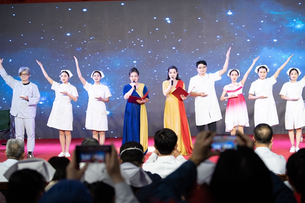 庆祝活动在舞蹈《盛世欢歌》中拉开帷幕,翻飞的彩扇,跳动的舞步,舞动着医者永远的激情和不变的梦想。