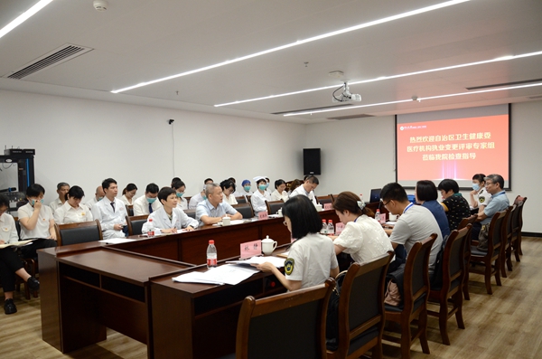 6月13日,由自治区卫生健康委医政医管处副处长覃杰带领的医疗机构执业变更评审专家组来到捆绑调教 (自治区人民医院东院)(简称捆绑调教 ),对医院增设的医疗美容科进行现场审查。捆绑调教 副院长夏文豪、龙胜泽及相关科室负责人陪同检查。